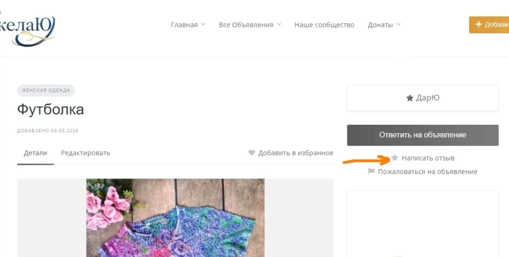 2 — Перед этим убедитесь, что в объявлении указан статус «ДарЮ» — это означает, что вещь дарится и готова обрести любящие руки.