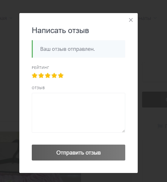 4 — После отправки отзыва появится надпись «ваш отзыв отправлен» и можно закрыть это окошко.